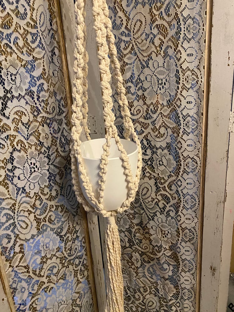 100% handmade - 44” in length - Boho chic plant hanger - Great gift for the plant lover in your life Perfect for trailing plants. Stunning, eye-catching piece. For small to large pots. Pots NOT included. Made with the minimalist in mind. Ready to ship from Los Angeles, CA. Read my “about me” to follow my instagram or to shop in my Mercari store!